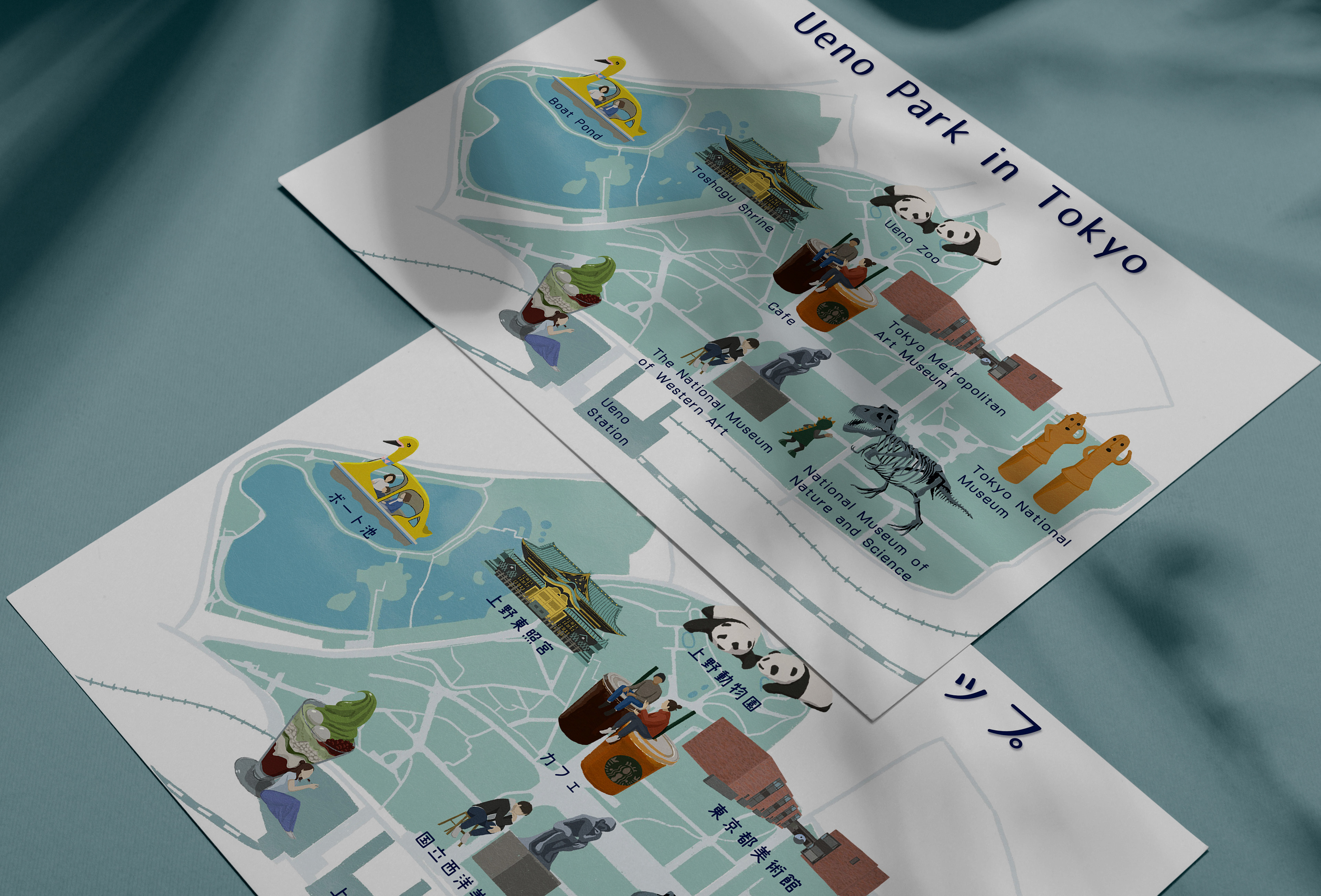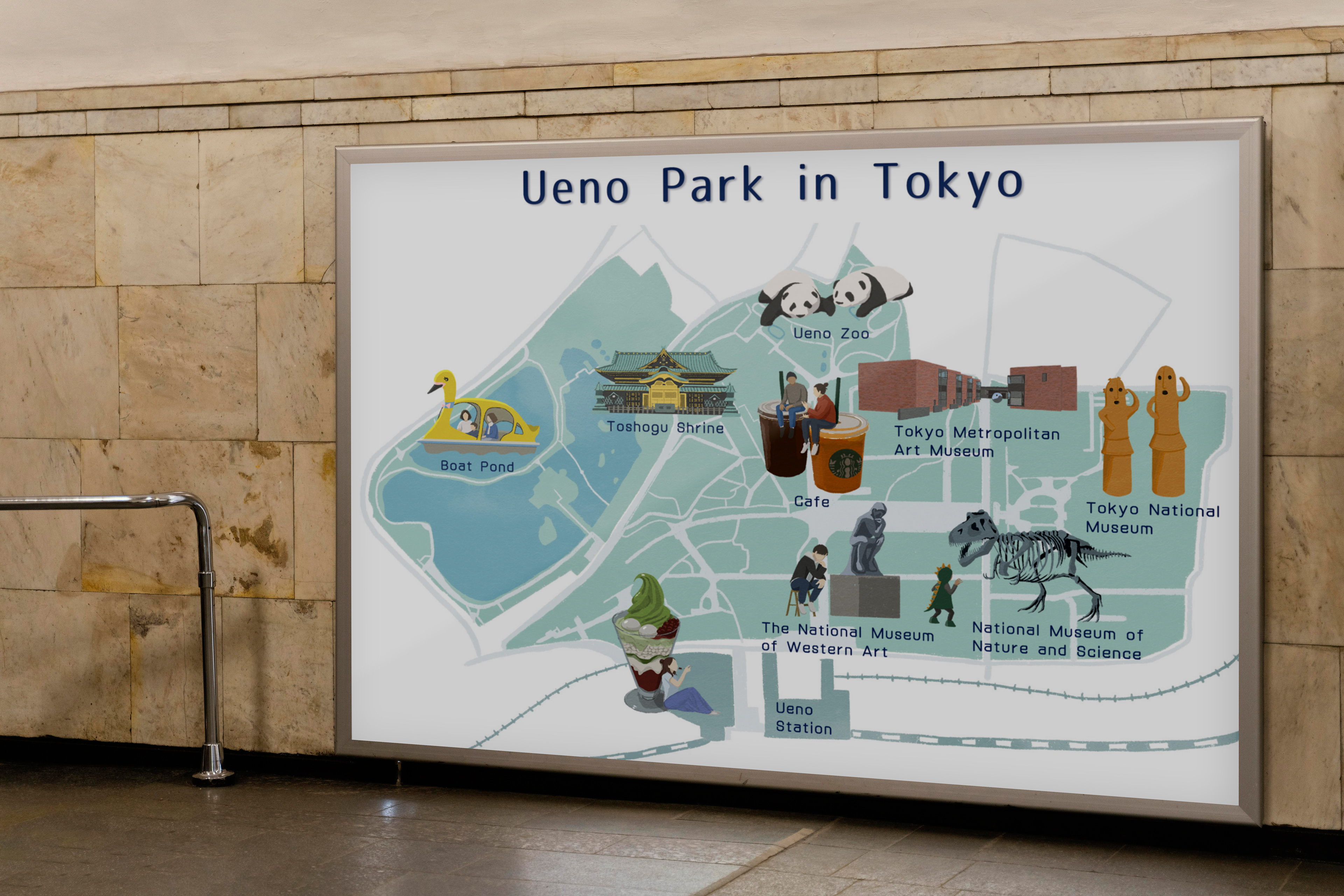 This illustration is a map of Ueno Park drawn on the theme of a stroll.